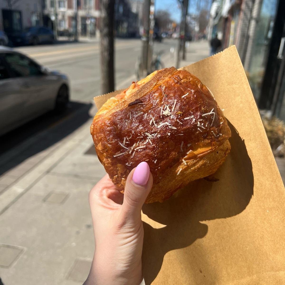 Ignore the Parmesan sprinkles on top. This doesn’t usually come on the chocolate croissant but they happened to sprinkle it on by accident and I didn’t mind.