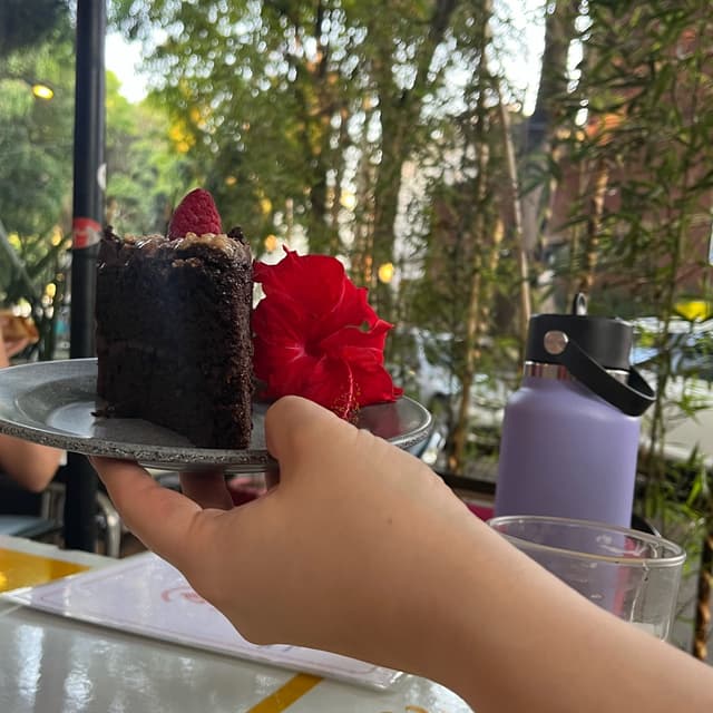 Wow con este pastel! Sin duda de los pasteles de chocolate más ricos que he probado hasta ahora 🥰 esponjoso, húmedo, y además tenia mazapán arriba. Súper recomendado 🍃