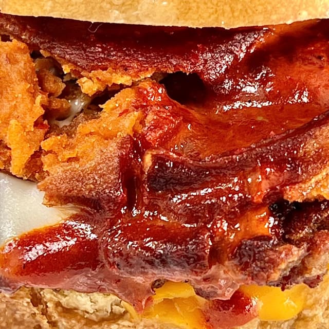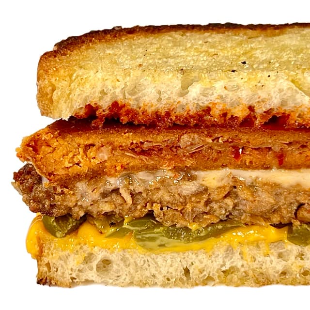This consisted of a 🐮-free burger patty made with Impossible Foods and Beyond Meat, 🐄🥛-free cheddar and mozzarella, deep-fried red chili and jackfruit tamale, grilled jalapeños, and guajillo aioli on toasted sourdough. Wow! This brilliant creation shows so convincingly that being vegan is not about deprivation.
