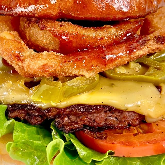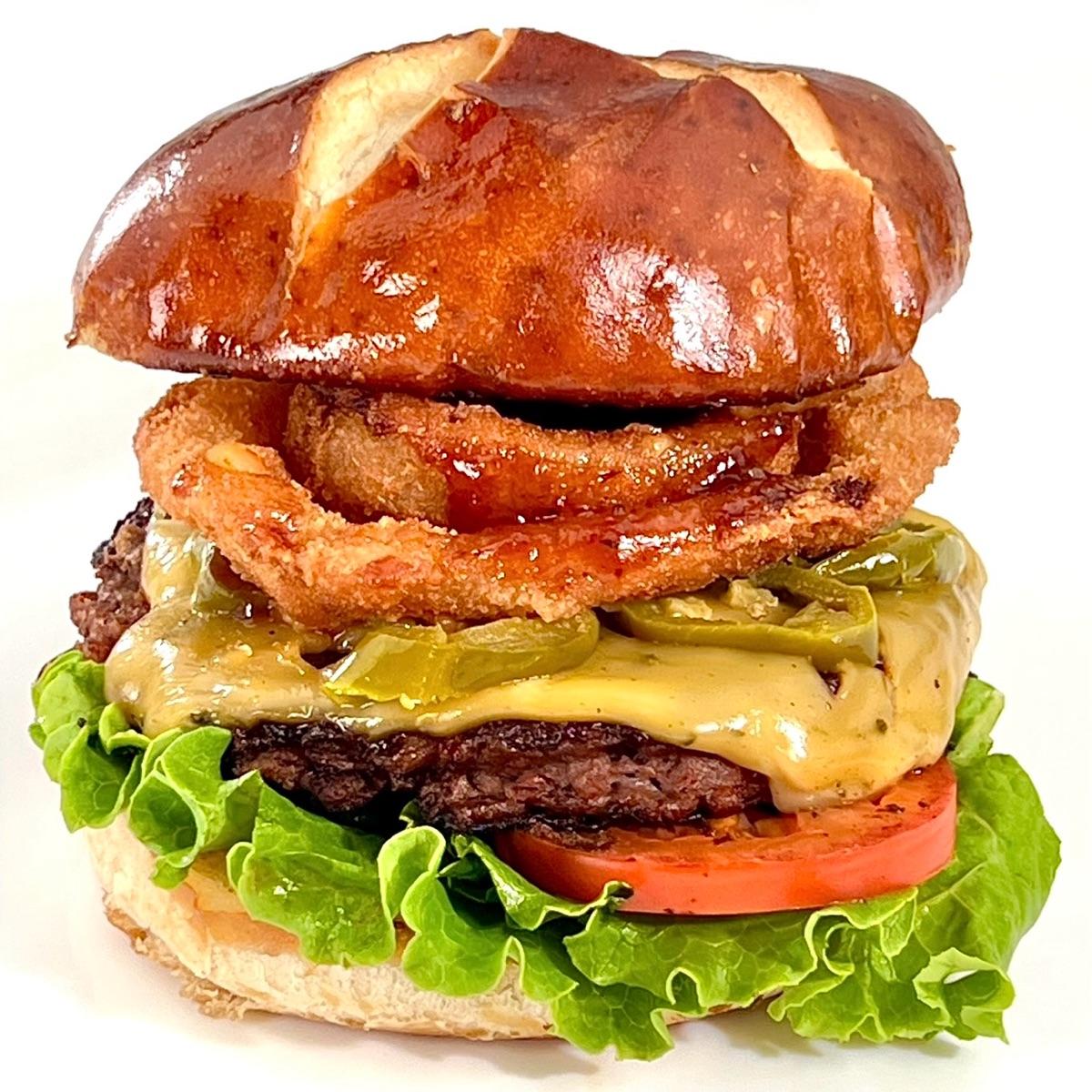 This consisted of a quarter pound beefy 🐮-free burger, house-made Nashville fire 🔥 seasoning, grilled jalapeños, 🐄🥛-free pepper jack cheese, crispy onion rings, Memphis sweet BBQ sauce, organic lettuce 🥬, and organic tomato 🍅 on a 🐄🥛-free butter toasted pretzel 🥨 bun. With sweet, smoky Southern flavors and a crunchy bite, this was so delicious. It is a special for Portland Burger Week, which runs through Sunday, 8-17-25, and is only $10.